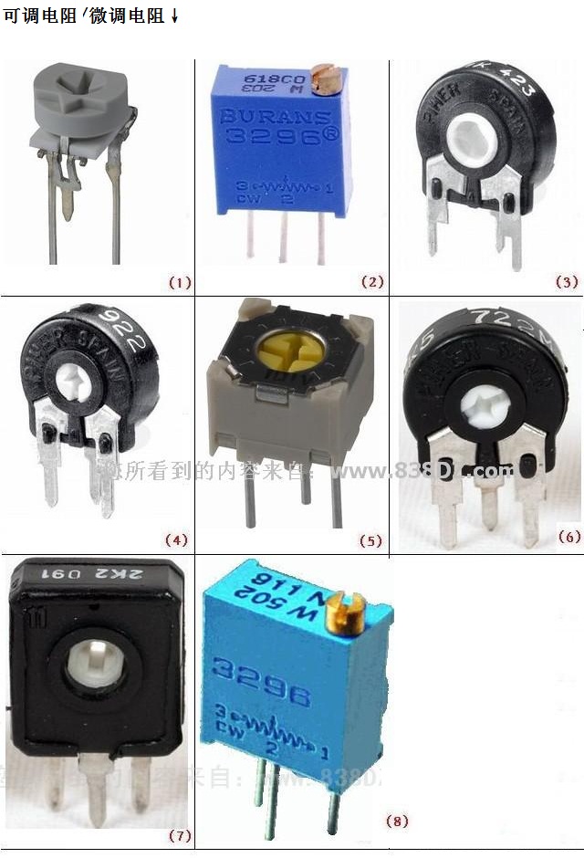 ↓图1线绕变阻器;图2、4基本旋转电位器;图5多圈电位器