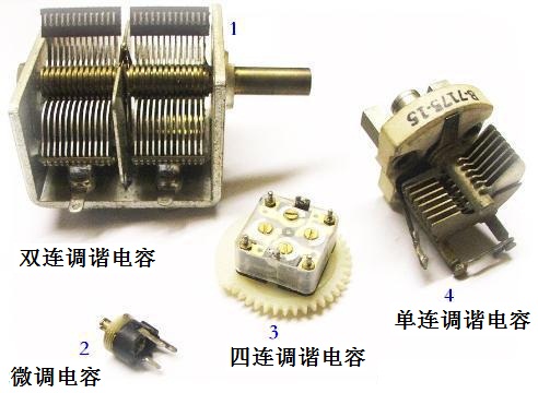 ↓图1 双连调谐电容;图2 微调电容;图3 四连调谐电容;图4 单连调谐电容