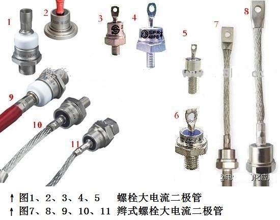 ↓图1、2、3、4、5螺栓大电流二极管;图7、8、9、10、11辫式螺栓大电流二极管