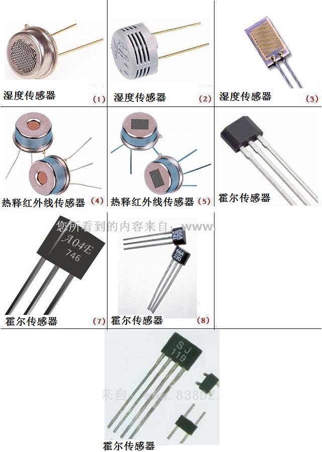 ↓图1、2、3 湿度传感器;图4、5 热释红外线传感器;图6、7、8、9 霍尔传感器/霍尔元件